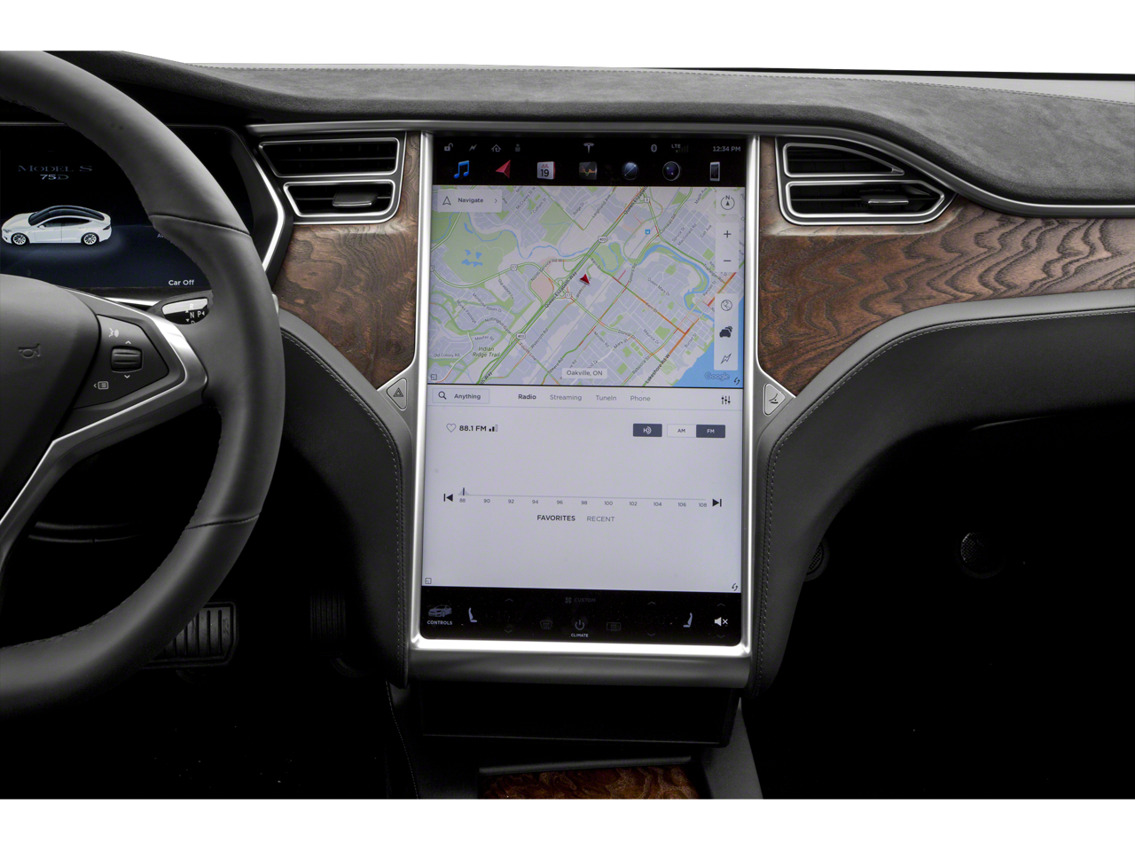 - Radio: FM w/Custom Audio System -inc: 17" capacitive touchscreen, onboard maps and navigation w/free updates for 7 years, WiFi and internet connectivity, GPS enabled HomeLink, hands free talking w/Bluetooth®, voice activated controls, 2 USB ports for media and power, 11 speakers w/neodymium magnets, 8" subwoofer and XM satellite radio capability