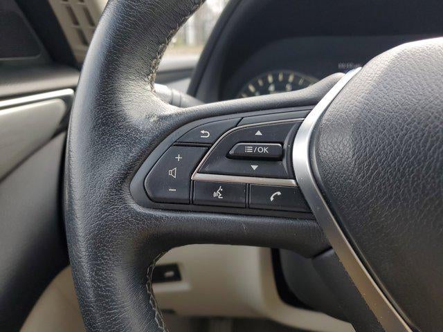 This Vehicle is nicely equipped with the following features: Essential Package (3.0t LUXE) (60/40 Split-Folding Rear Seats, Driver Seat Power Lumbar, Heated Front Seats, Heated Steering Wheel, and Remote Engine Start), 18 x 7.5 Aluminum Alloy Wheels, 6 Speakers, Alloy wheels, Apple CarPlay/Android Auto, Automatic temperature control, Front dual zone A/C, Front reading lights, Leather Shift Knob, Leather steering wheel, Navigation System, Power moonroof, Radio data system, Radio: INFINITI InTouch w/AM/FM/HD/CD, 4-Wheel Disc Brakes, ABS brakes, Air Conditioning, AM/FM radio: SiriusXM, Auto-dimming Rear-View mirror, Blind Spot Warning, Brake assist, Bumpers: body-color, CD player, Compass, Delay-off headlights, Driver door bin, Driver vanity mirror, Dual front impact airbags, Dual front side impact airbags, Electronic Stability Control, Four wheel independent suspension, Front anti-roll bar, Front Bucket Seats, Front Center Armrest, Front fog lights, Fully automatic headlights, Garage door transmitter: HomeLink, Heated door mirrors, Illuminated entry, Leatherette Seating Surfaces, Literature Kit, Low tire pressure warning, Occupant sensing airbag, Outside temperature display, Overhead airbag, Overhead console, Panic alarm, Passenger door bin, Passenger vanity mirror, Power door mirrors, Power driver seat, Power passenger seat, Power steering, Power windows, Premium Paint, Rain sensing wipers, Rear anti-roll bar, Rear reading lights, Rear seat center armrest, Rear window defroster, Remote keyless entry, Security system, Speed control, Speed-Sensitive Wipers, Splash Guards, Steering wheel mounted audio controls, Tachometer, Telescoping steering wheel, Tilt steering wheel, Traction control, Trip computer, Turn signal indicator mirrors, and Variably intermittent wipers.