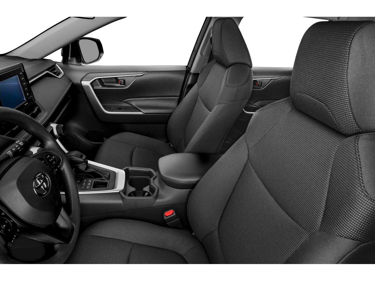 This Vehicle is nicely equipped with the following features: Cloth, 17 Steel Wheels, 4-Wheel Disc Brakes, 6 Speakers, ABS brakes, Air Conditioning, AM/FM radio: SiriusXM, AM/FM Stereo, Apple CarPlay/Android Auto, Auto High-beam Headlights, Axle Ratio: 3.177, Brake assist, Bumpers: body-color, Driver door bin, Driver vanity mirror, Dual front impact airbags, Dual front side impact airbags, Electronic Stability Control, Emergency communication system: Entune Safety Connect, Exterior Parking Camera Rear, Fabric Seat Trim, Four wheel independent suspension, Front anti-roll bar, Front Bucket Seats, Front Center Armrest, Front reading lights, Illuminated entry, Knee airbag, Low tire pressure warning, Occupant sensing airbag, Outside temperature display, Overhead airbag, Overhead console, Panic alarm, Passenger door bin, Passenger vanity mirror, Power door mirrors, Power steering, Power windows, Radio data system, Rear anti-roll bar, Rear seat center armrest, Rear window defroster, Rear window wiper, Remote keyless entry, Roof rack: rails only, Speed control, Speed-sensing steering, Split folding rear seat, Spoiler, Steering wheel mounted audio controls, Tachometer, Telescoping steering wheel, Tilt steering wheel, Traction control, and Trip computer.