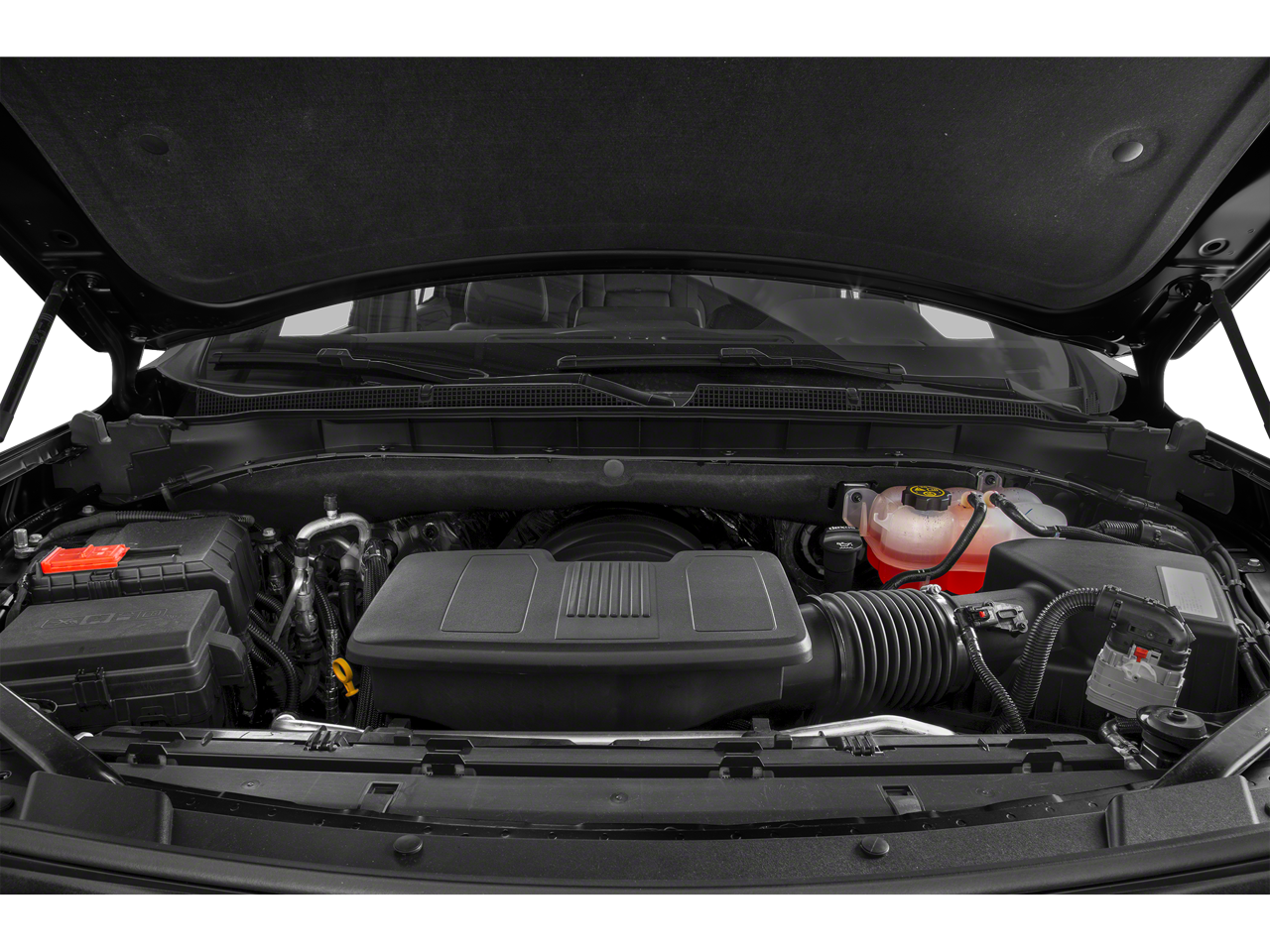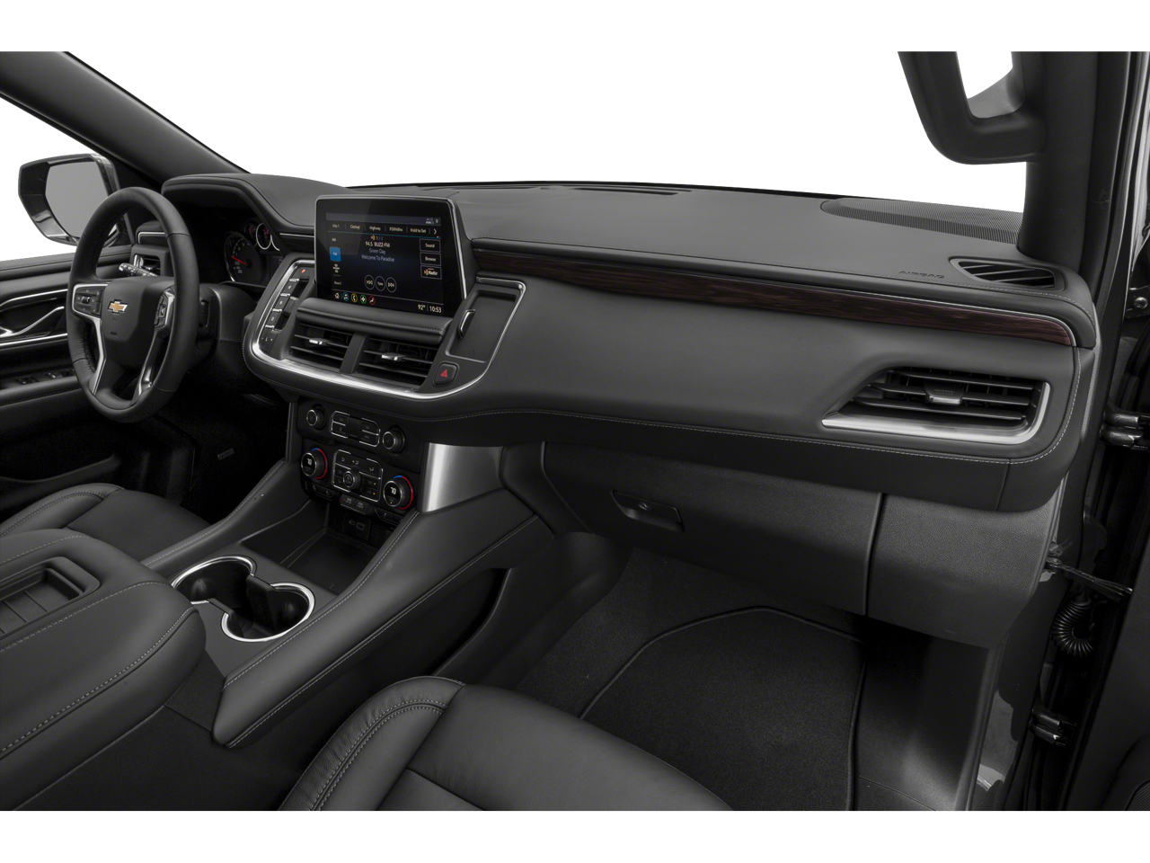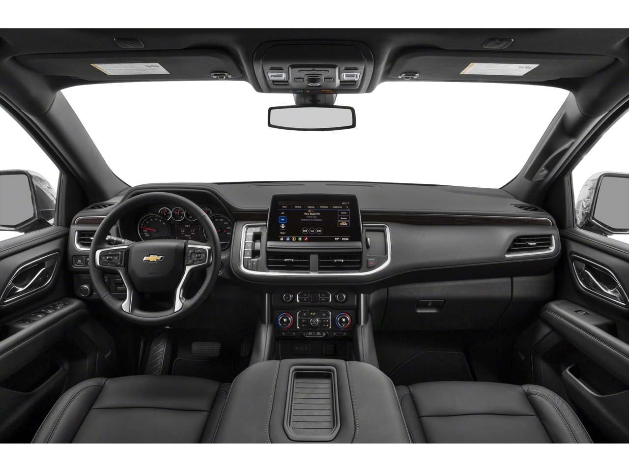 This vehicle comes equipped with: Advanced Trailering Package (Hitch Guidance w/Hitch View, Integrated Trailer Brake Controller, and Smart Trailer Integration Indicator), Driver Alert Package (Lane Change Alert w/Side Blind Zone Alert and Rear Cross Traffic Alert), License Plate Front Mounting Package, LT Signature Package (Dual-Pane Power Panoramic Sunroof), Luxury Package (2nd Row Pwr Release 60/40 Split-Folding Bench Seat, 3rd Row 60/40 Power-Folding Split-Bench Seat, HD Surround Vision, Heated 2nd Row Outboard Seats, Heated Steering Wheel, Memory Settings, Outside Heated Power-Adjustable Mirrors, Power Tilt & Telescopic Steering Column, and Rear Pedestrian Alert), Max Trailering Package (2-Speed Active Electronic AutoTrac Transfer Case and Extra Capacity Cooling System), Preferred Equipment Group 1LT (1st & 2nd Row Color-Keyed Carpeted Floor Mats, Auto-Dimming Inside Rear-View Mirror, Automatic Stop/Start, Bose 9-Speaker Stereo Audio System Feature, Bright Front & Rear Door Sill Plates, Color-Keyed Carpeting Floor Covering, Driver & Front Outboard Passenger Airbags, Enhanced Driver Information Center, Floor Console w/Storage Area, Hands-Free Rear Power Programmable Liftgate, Infotainment Display, Leather-Wrapped Steering Wheel, LED Daytime Running Lamps, Memory Settings for Driver, Remote Start, SiriusXM Radio w/360L, Start/Stop System Disable Button, Universal Home Remote, and Wireless Charging), 4WD, Black Leather, 10-Way Power Driver & Passenger Seat Adjusters, 3.23 Rear Axle Ratio, 3rd row seats: split-bench, 4-Wheel Disc Brakes, 9 Speakers, ABS brakes, Air Conditioning, Alloy wheels, AM/FM radio: SiriusXM with 360L, Apple CarPlay/Android Auto, Auto High-beam Headlights, Auto-dimming Rear-View mirror, Automatic temperature control, Brake assist, Bumpers: body-color, Compass, Delay-off headlights, Driver door bin, Driver vanity mirror, Dual front impact airbags, Dual front side impact airbags, Electronic Stability Control, Emergency communication system: OnStar and Chevrolet connected services capable, Four wheel independent suspension, Front anti-roll bar, Front Bucket Seats, Front Center Armrest, Front dual zone A/C, Front High-Back Reclining Bucket Seats, Front reading lights, Fully automatic headlights, Garage door transmitter, Heated door mirrors, Heated Driver & Front Passenger Seats, Heated front seats, Illuminated entry, Leather steering wheel, Leather-Appointed Seat Trim, Low tire pressure warning, Memory seat, Navigation System, Not Equipped w/Front & Rear Park Assist, Not Equipped w/Steering Column Lock, Occupant sensing airbag, Outside temperature display, Overhead airbag, Overhead console, Panic alarm, Passenger door bin, Passenger vanity mirror, Power door mirrors, Power driver seat, Power Liftgate, Power passenger seat, Power Release 2nd Row Bucket Seats, Power steering, Power windows, Premium audio system: Chevrolet Infotainment System 3, Premium Smooth Ride Suspension, Radio: Chevrolet Infotainment 3 Premium System, Rain sensing wipers, Rear air conditioning, Rear anti-roll bar, Rear reading lights, Rear seat center armrest, Rear window defroster, Rear window wiper, Remote keyless entry, Roof rack: rails only, Security system, Speed control, Speed-sensing steering, Split folding rear seat, Spoiler, Steering wheel mounted audio controls, Tachometer, Telescoping steering wheel, Tilt steering wheel, Traction control, Trip computer, Variably intermittent wipers, Voltmeter, Wheels: 18 x 8.5 Bright Silver Painted Aluminum, and Wheels: 20 x 9 Painted Aluminum.