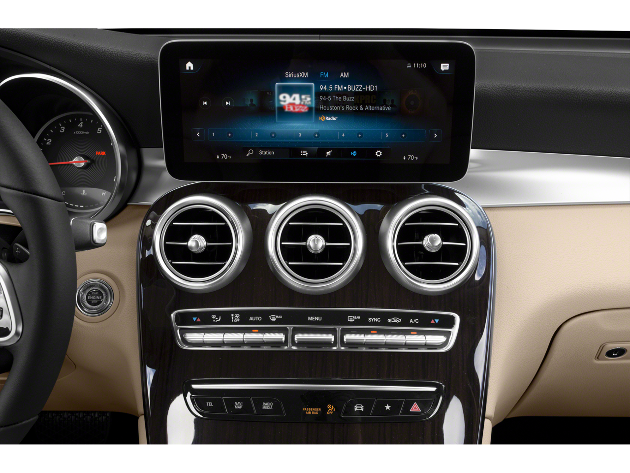This vehicle comes equipped with : 10.25" Center Touchscreen Display, 3.27 Axle Ratio, 4-Way Lumbar Support, 4-Wheel Disc Brakes, 6 Speakers, ABS brakes, Air Conditioning, Alloy wheels, AM/FM radio, Apple CarPlay®/Android Auto®, Auto High-beam Headlights, Auto tilt-away steering wheel, Auto-dimming door mirrors, Auto-dimming Rear-View mirror, Automatic temperature control, Brake assist, Bumpers: body-color, Child-Seat-Sensing Airbag, Delay-off headlights, Driver door bin, Driver vanity mirror, Dual front impact airbags, Dual front side impact airbags, Electronic Stability Control, Emergency communication system: eCall Emergency System, Exterior Parking Camera Rear, Four wheel independent suspension, Front anti-roll bar, Front Bucket Seats, Front Center Armrest, Front dual zone A/C, Front reading lights, Fully automatic headlights, Garage door transmitter: HomeLink, Genuine wood dashboard insert, Heated door mirrors, Heated Front Bucket Seats, Heated front seats, Illuminated entry, Knee airbag, Leather steering wheel, Low tire pressure warning, MB-Tex Upholstery, Memory seat, Occupant sensing airbag, Outside temperature display, Overhead airbag, Overhead console, Panic alarm, Passenger door bin, Passenger vanity mirror, Power door mirrors, Power driver seat, Power Front Seat w/Driver Memory, Power Liftgate, Power passenger seat, Power steering, Power windows, Radio data system, Radio: MBUX Multimedia System, Rain sensing wipers, Rear anti-roll bar, Rear fog lights, Rear reading lights, Rear seat center armrest, Rear window defroster, Rear window wiper, Remote keyless entry, Roof rack: rails only, Security system, Speed control, Speed-sensing steering, Split folding rear seat, Spoiler, Steering wheel memory, Steering wheel mounted audio controls, Tachometer, Telescoping steering wheel, Tilt steering wheel, Traction control, Trip computer, Turn signal indicator mirrors, Variably intermittent wipers, and Wheels: 8J x 18 ET 38 Split 5-Spoke.