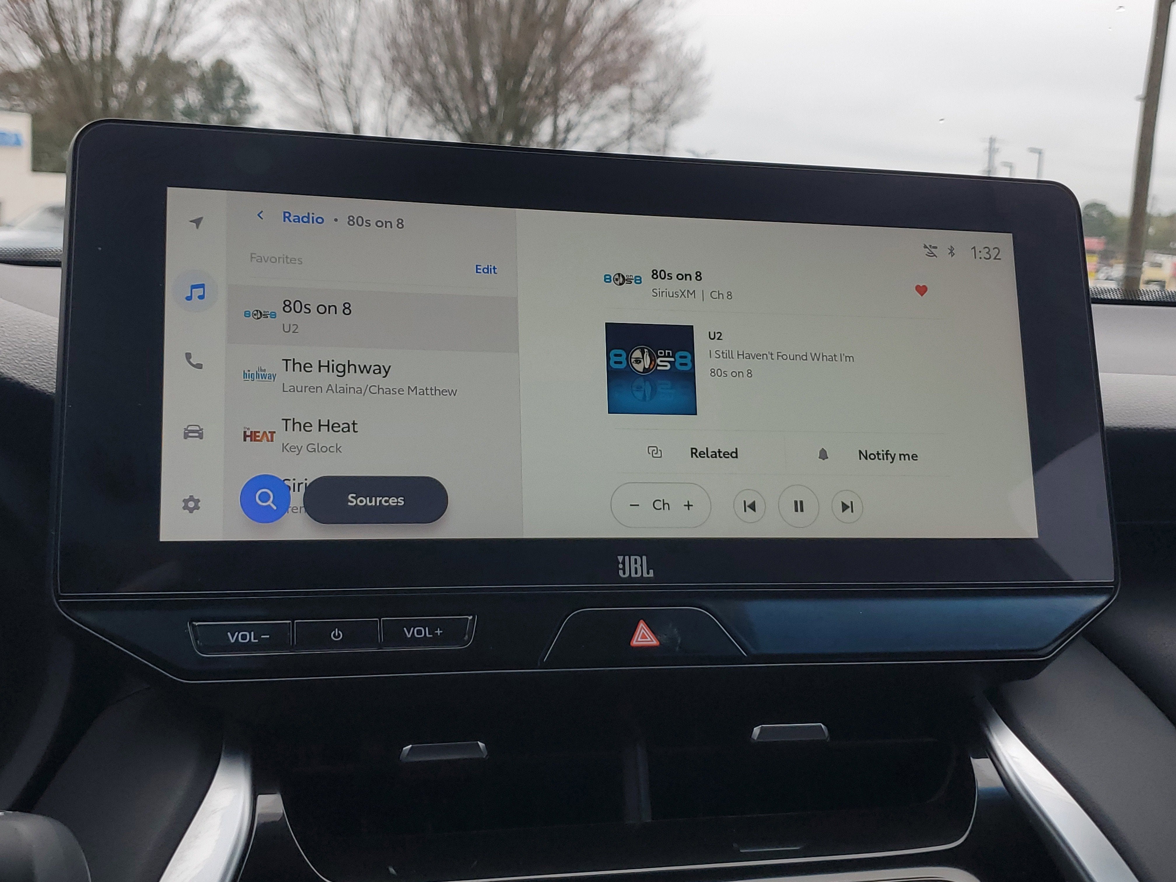 - Radio: Audio Plus -inc: 8" touchscreen, AM/FM/HD Radio, 6 speakers, navigation system, 1USB and 1 AUX media port, 3 additional USB charge ports, advanced voice recognition, hands-free phone capability and music streaming via Bluetooth® wireless technology, Android Auto, Apple CarPlay and Amazon Alexa compatible, SiriusXM w/3-month All Access trial, Connected Services - Safety Connect w/1-year trial, Service Connect w/10-year trial, Remote Connect w/1-year trial, Wi-Fi Connect w/up to 2 GB within 3-month trial, See toyota.com/audio-multimedia and toyota.com/connected-services for details