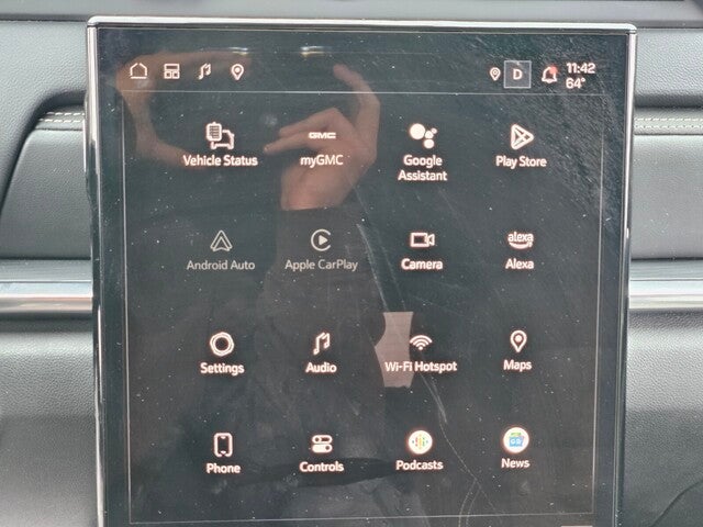 - 15" diagonal Premium GMC Infotainment System high contrast display with Google Built-In compatibility including navigation capability, color touch-screen, multi-touch display, connected apps, personalized for each driver's settings, Natural Voice Recognition and Phone Integration for Wireless Apple CarPlay/Wireless Android Auto for compatible phones