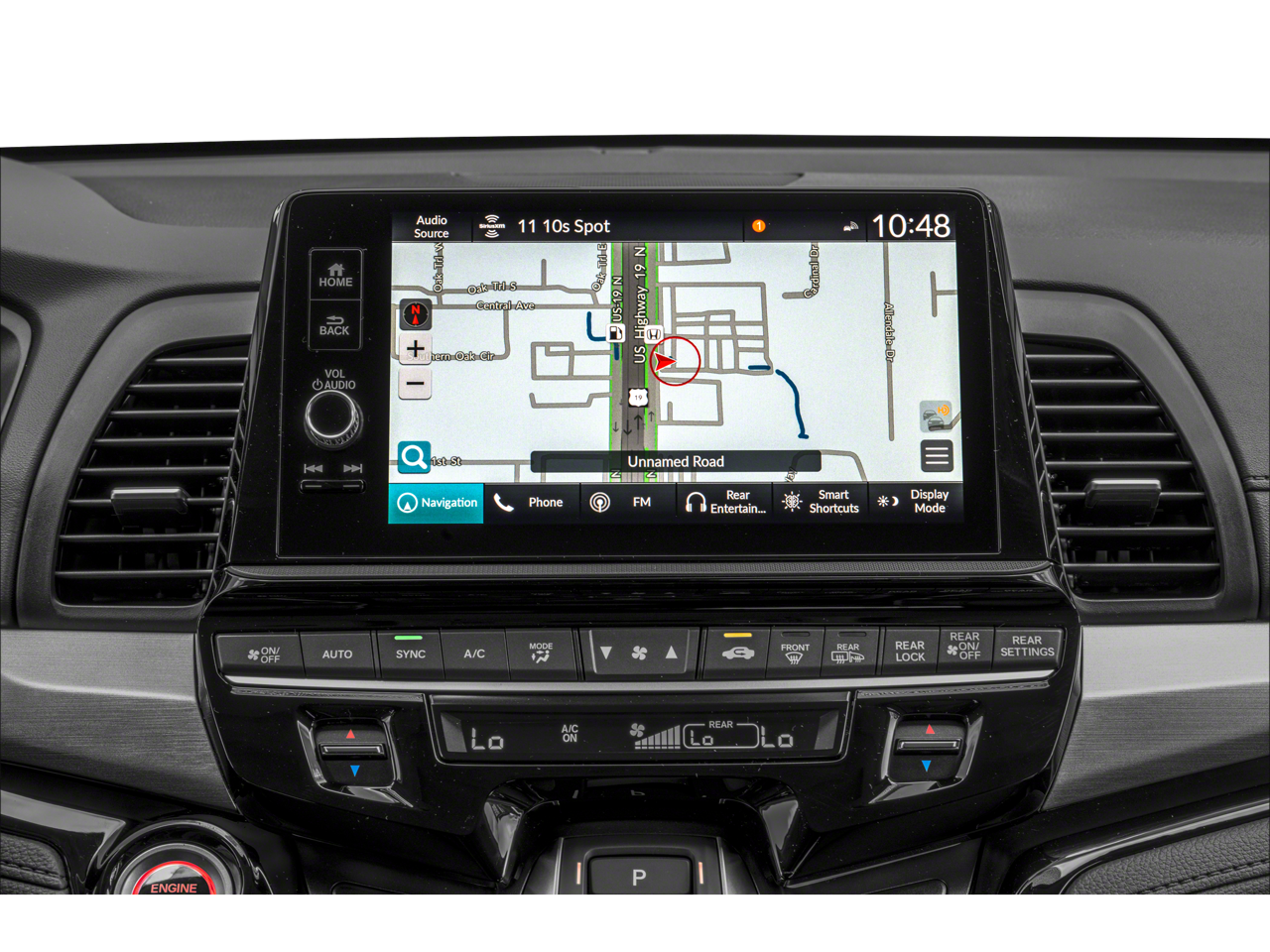 This vehicle comes equipped with: 19 Silver Alloy Wheels, 3rd row seats: split-bench, 4-Wheel Disc Brakes, 7 Speakers, ABS brakes, Adaptive Cruise Control: Adaptive Cruise Control (ACC) with Low-Speed Follow, Air Conditioning, Alloy wheels, AM/FM radio: SiriusXM, Anti-whiplash front head restraints, Apple CarPlay/Android Auto, Auto High-beam Headlights, Auto-dimming Rear-View mirror, Automatic temperature control, Blind Spot Information (BSI) System warning, Brake assist, Bumpers: body-color, Compass, Delay-off headlights, Driver door bin, Driver vanity mirror, Driver's Seat Mounted Armrest, Dual front impact airbags, Dual front side impact airbags, Electronic Stability Control, Emergency communication system: HondaLink, Exterior Parking Camera Rear, Four wheel independent suspension, Front anti-roll bar, Front Bucket Seats, Front dual zone A/C, Front fog lights, Front reading lights, Fully automatic headlights, Garage door transmitter: HomeLink, Heated door mirrors, Heated Front Bucket Seats, Heated front seats, Illuminated entry, Knee airbag, Lane departure: Lane Keeping Assist System (LKAS) active, Leather steering wheel, Leather Trimmed Seats w/Piping, Low tire pressure warning, Memory seat, Navigation system: Honda Satellite-Linked Navigation System, Occupant sensing airbag, Outside temperature display, Overhead airbag, Overhead console, Panic alarm, Passenger door bin, Passenger seat mounted armrest, Passenger vanity mirror, Power door mirrors, Power driver seat, Power Liftgate, Power moonroof, Power passenger seat, Power steering, Power windows, Radio data system, Radio: 160-Watt AM/FM/HD/SiriusXM Audio System, Rear air conditioning, Rear anti-roll bar, Rear audio controls, Rear reading lights, Rear seat center armrest, Rear window defroster, Rear window wiper, Reclining 3rd row seat, Remote keyless entry, Security system, Speed control, Speed-sensing steering, Speed-Sensitive Wipers, Split folding rear seat, Spoiler, Steering wheel mounted audio controls, Tachometer, Telescoping steering wheel, Tilt steering wheel, Traction control, Trip computer, Turn signal indicator mirrors, and Variably intermittent wipers.
