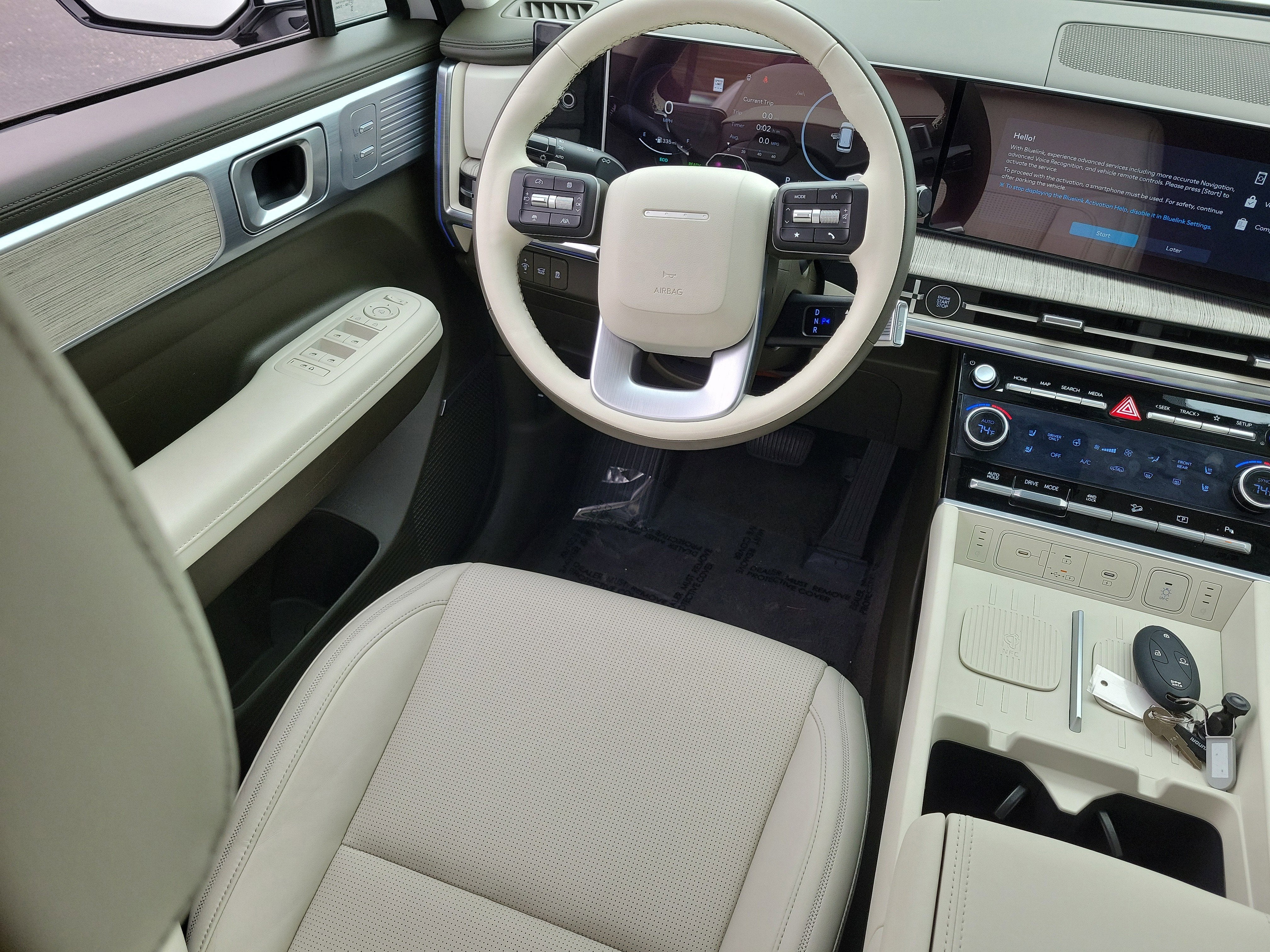 - Radio: AM/FM/HD Bose Premium Audio System -inc: 12 speakers including subwoofer, external amplifier, 12.3" wide touchscreen, Apple CarPlay and Android Auto, Bluetooth® hands-free w/wireless audio streaming, dynamic voice recognition, USB connectivity, SiriusXM, wifi hotspot, Blue Link connected car system, navigation system including traffic flow w/incident data via HD Radio (HERE), OTA updates (map only) and rear seat quiet mode