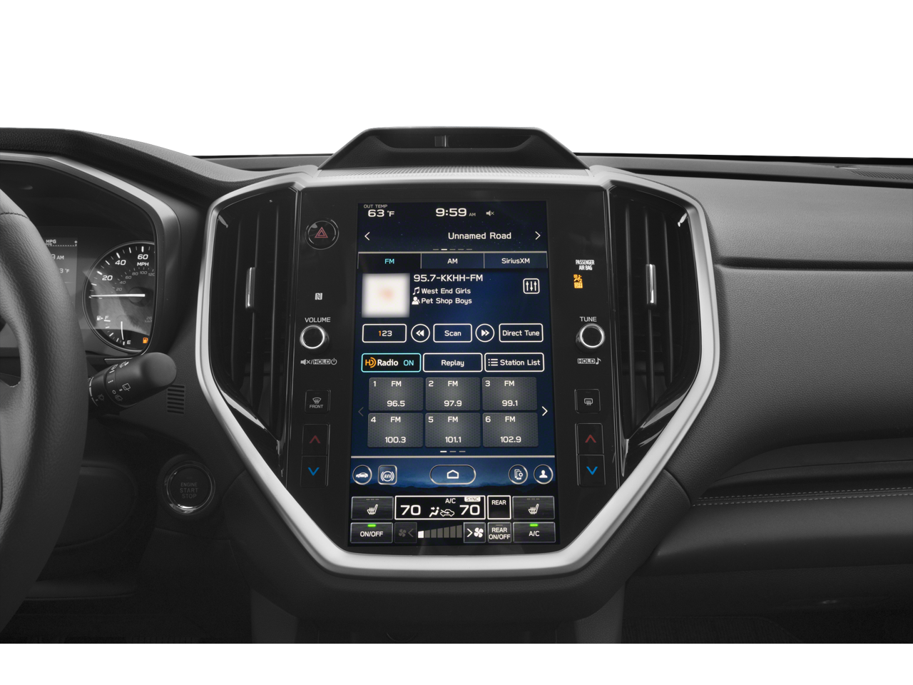 - Radio: Subaru 11.6" Multimedia System w/Navigation -inc: AM/FM stereo HD Radio, multi-touch gesture high resolution display screen, voice activated controls for radio and navigation, Bluetooth® audio streaming and hands-free phone connectivity w/SMS text messaging connectivity (refer to subaru.com for cell phone compatibility), Near Field Communication (NFC), TomTom navigation software w/what3words, iPod control capability, smartphone integration for Android Auto and Apple CarPlay w/full screen view and wireless connection, USB audio system update, TomTom navigation system update w/USB/Map Over The Air (MOTA) (3 years free map updates), steering wheel control switches for audio and Bluetooth®, harman/kardon quantum logic surround sound speaker system w/14 speakers, subwoofer and harman/kardon 792 watt equivalent maximum output amplifier, 3.5mm illuminated auxiliary input jack, illuminated USB A and C input/charge ports, SiriusXM w/360L (4 months free trial included/subscription required after), SiriusXM Travel Link (4 months free trial included/subscription required after) and SiriusXM Traffic (3 years free trial included/subscription required after)