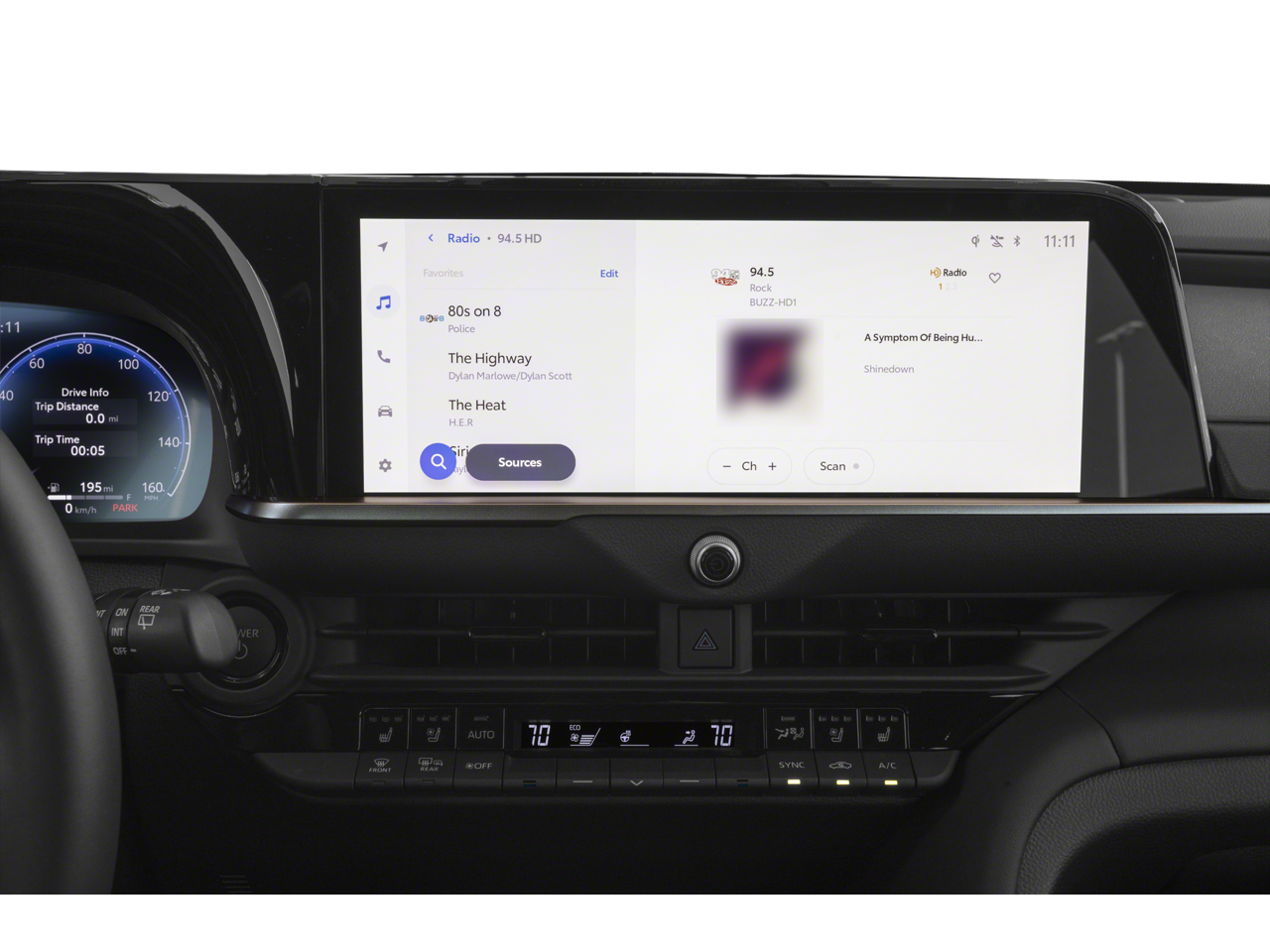 This vehicle comes equipped with: 11 Speakers, 4-Wheel Disc Brakes, ABS brakes, Air Conditioning, Alloy wheels, AM/FM radio: SiriusXM, Apple CarPlay/Android Auto, Auto High-beam Headlights, Auto-dimming Rear-View mirror, Automatic temperature control, Brake assist, Bumpers: body-color, Compass, Delay-off headlights, Driver door bin, Driver vanity mirror, Dual front impact airbags, Dual front side impact airbags, Electronic Stability Control, Emergency communication system: Safety Connect (up to 10-year trial subscription), Exterior Parking Camera Rear, Four wheel independent suspension, Front anti-roll bar, Front Bucket Seats, Front Center Armrest, Front dual zone A/C, Front reading lights, Fully automatic headlights, Garage door transmitter: HomeLink, Headlight cleaning, Heated & Ventilated Front Bucket Seats, Heated door mirrors, Heated front seats, Heated rear seats, Heated steering wheel, Illuminated entry, Knee airbag, Leather Shift Knob, Leather steering wheel, Leather-Trimmed Seat Trim, Low tire pressure warning, Memory seat, Navigation system: Dynamic Navigation (3-year trial), Occupant sensing airbag, Outside temperature display, Overhead airbag, Overhead console, Panic alarm, Passenger door bin, Passenger vanity mirror, Power door mirrors, Power driver seat, Power Liftgate, Power passenger seat, Power steering, Power windows, Radio data system, Radio: Toyota Audio Multimedia, Rain sensing wipers, Rear anti-roll bar, Rear reading lights, Rear seat center armrest, Rear window defroster, Rear window wiper, Remote keyless entry, Security system, Speed control, Speed-sensing steering, Split folding rear seat, Spoiler, Steering wheel mounted audio controls, Tachometer, Telescoping steering wheel, Tilt steering wheel, Traction control, Trip computer, Turn signal indicator mirrors, Variably intermittent wipers, Ventilated front seats, and Wheels: 8.5 x 21 7-Spoke Dark Gray Metallic Alloy.